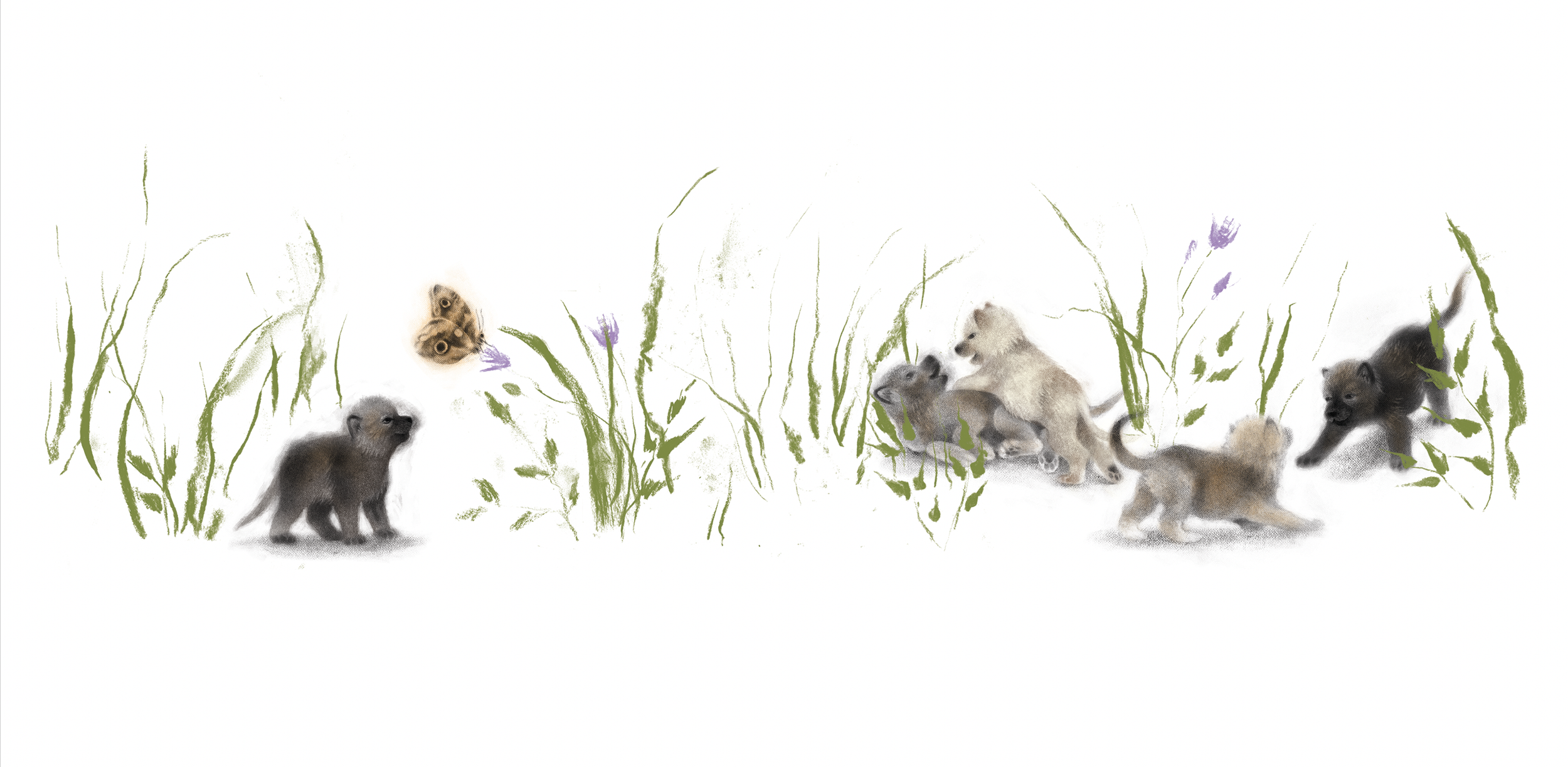Long ago, a wolf pup was born in a forest. This pup was a wolf, and so were her brothers and sisters. But this wolf was different. She liked staying close to the den instead of hunting and chasing her tail instead of chasing other animals. She wished she were more like her siblings—more like a real wolf.